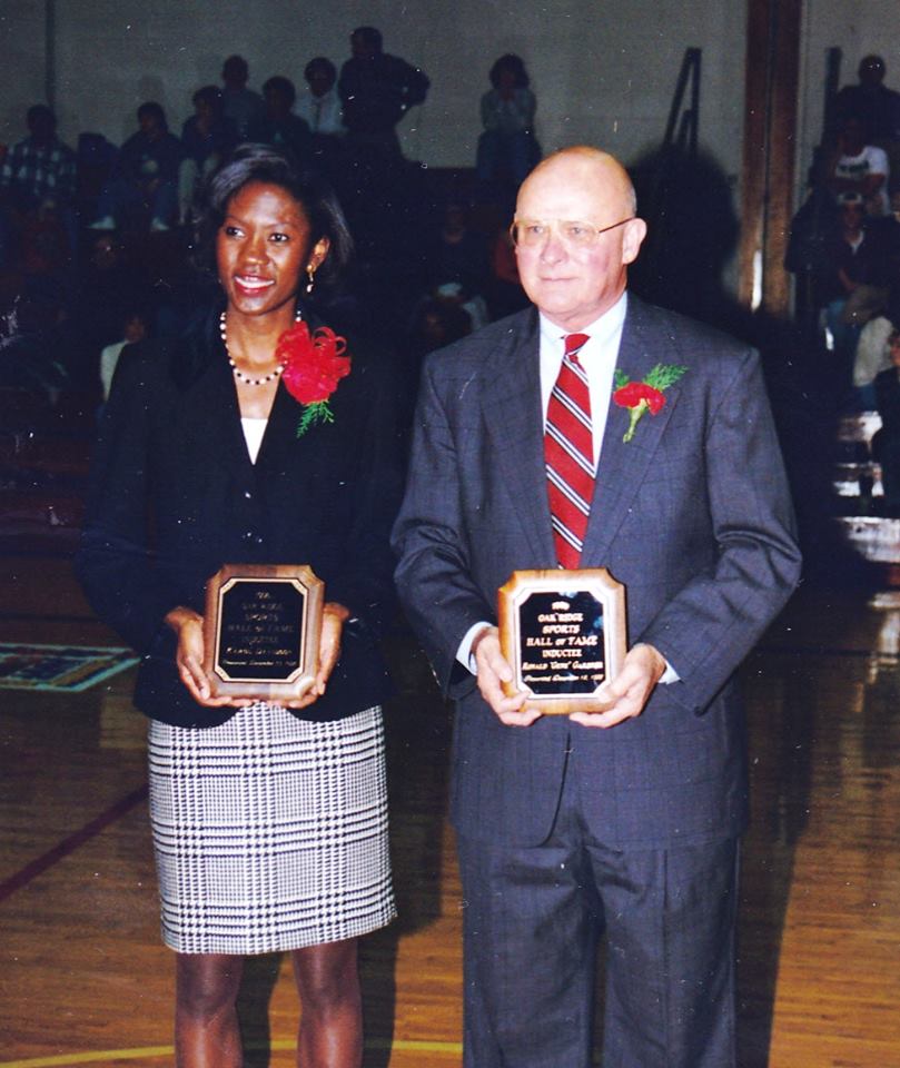 Karol Davidson: Karol was ORHS Cross Country, Track & Field. Individual state CC Championship -1981; team CC championship -1982. State 880-yd. mile, & high jump championship-1983. National High School All-American in Track & Field -1983 & Hertz Athlete of the Year -1983. National Jr. Olympics Championship in 800m and 1500m in 1982. University of Tennessee: 4 x 800m team set collegiate record that still stands today; NCAA champion 4 x 800 m. University of Texas: UT & SWC record in 800m, second all time in Big 12 Conference in 800m, SWC 800m individual champion for 3 years; NCAA indoor champion 1000m -1986; NCAA indoor 800m champion -1988. Member of NCAA Women's Championship team 1986 & 1988 (indoor) and 1986 (outdoor). American & Collegiate record 1600 Sprint Medley Relay Team - 1988. All American indoor and outdoor Track & Field, 1986, 1987, 1988. Gene Gardner: Gene was a three sport letterman in Junior High and High School at Oak Ridge (FB, BB, TK). Captain of OR's first State Championship Team: Track, 1952. Four year letterman at U.T. (track & cross country), Captain of both teams his senior year. Commissioned in USAF upon graduation, served 28 years, retiring as Colonel. Highest decoration: Legion of Merit. Served in Vietnam, Turkey, and other overseas locations. Highest position: Base Commander. |
